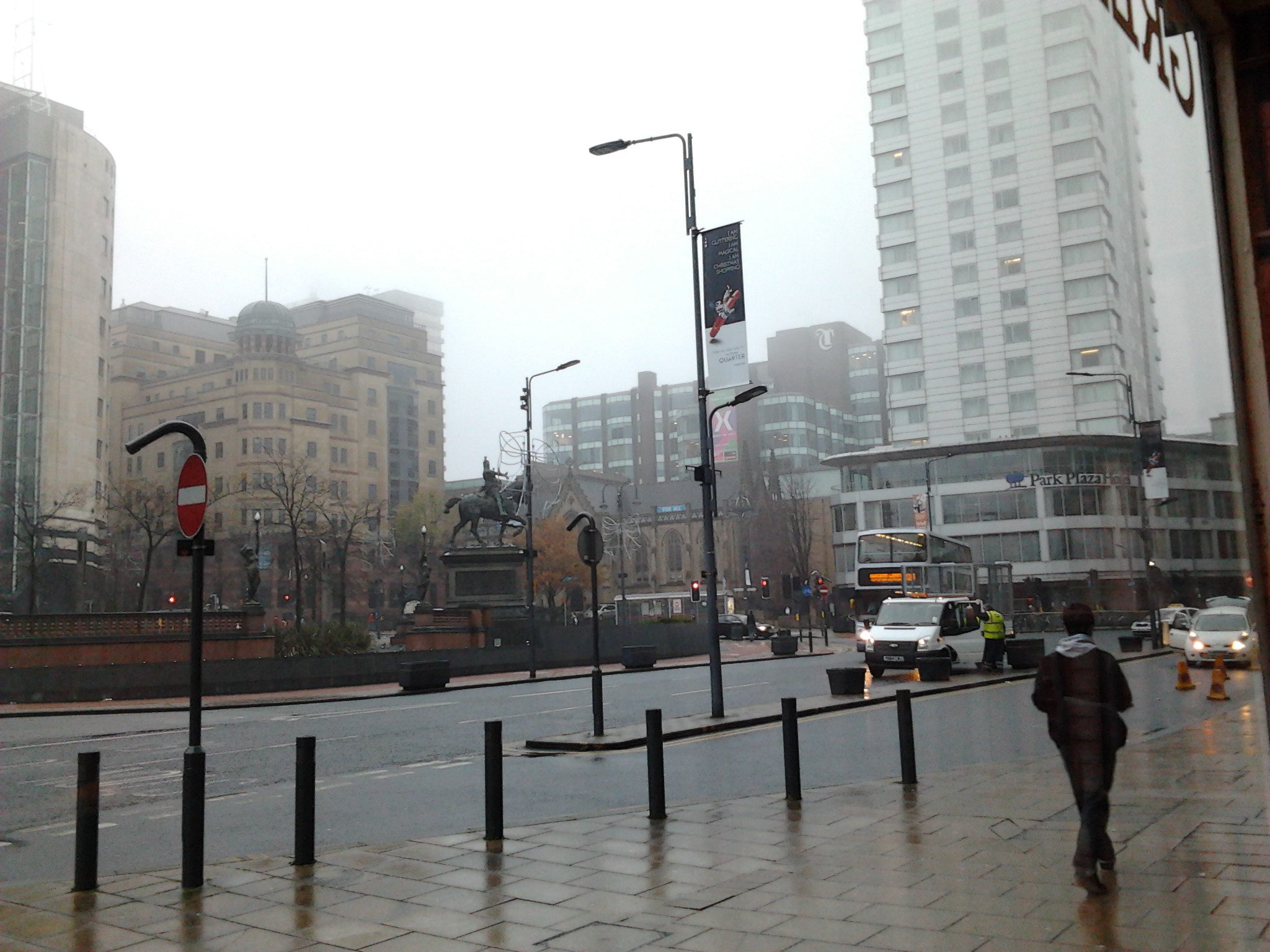 saturday 22 – took early train with john to leeds, then we split up – he takes the london train, I spend some time at the bagel cafe looking out at the Leeds’ streets:
