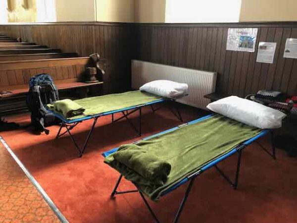 Accomodation was well-planned in the corner of the church behind a screen for the kitchen area with a door leading through to the bathroom and sturdy camping beds (by Hi-Gear) placed in front of the screens in the church area.