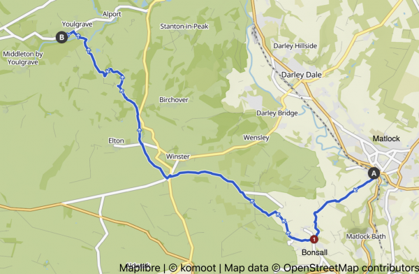 We set off at around 11.30am on the walk, and arrived at Youlgrave after a long hike albeit with a few navigation errors, so it’s possible to arrive at Matlock on the first day, rather than staying a night, which would be the more comfortable option.