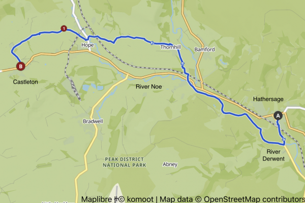 As we wanted to get to Castleton early to meet up with Susan and Robert, we decide to have breakfast at the Pool Cafe, which was near the chapel in Hathersage. The route was fairly straight forward along the River Derwent, then the River Noe, from the bridge at Shatton.